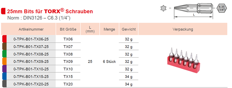 Produktinformationen "Sloky TORX Bits 25 mm (6 Stck.)"