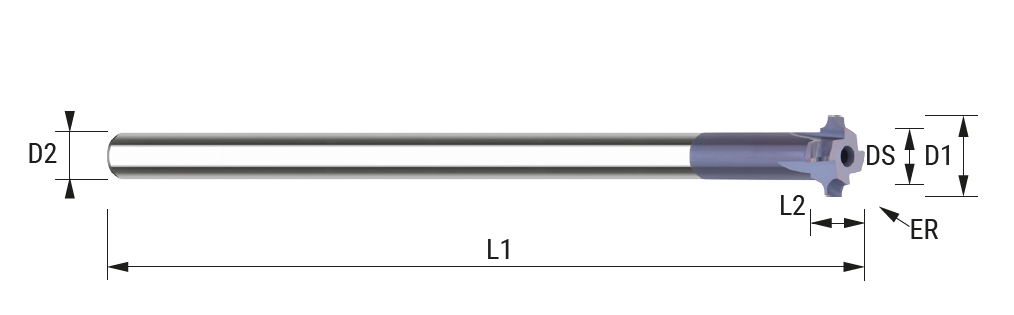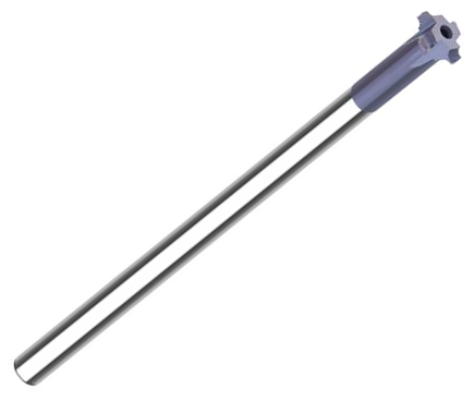 Vorderseitiges und rückwärtiges Verrunden von Werkstückkanten. Ab 8 mm Bohrungsdurchmesser einsetzbar. Vollhartmetall mit BlueCut Beschichtung für eine lange Standzeit.