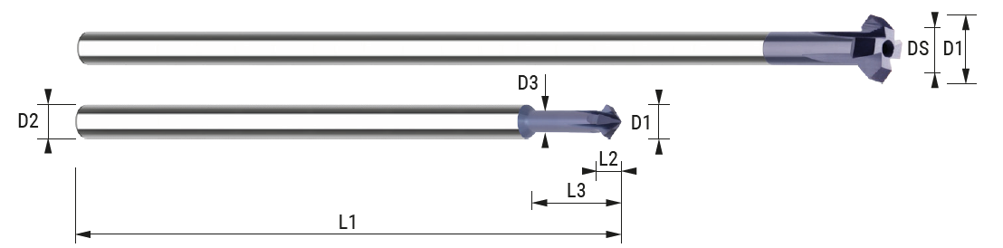 Vor- und Rückwärtsentgratung mit nur einem Werkzeug. Vorderseitiges und rückwärtiges anfasen. Ab 2 mm einsetzbar. Vollhartmetall mit TiAlN Beschichtung für eine lange Standzeit.