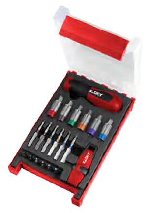 • 6 Drehmoment-Adapter: TX6 (0.6 Nm) / TX7 (0.9 Nm) / TX8 (2.0 Nm) / TX9 (2.0 Nm) TX10 (2.0 Nm) / TX15 (3.0 Nm)