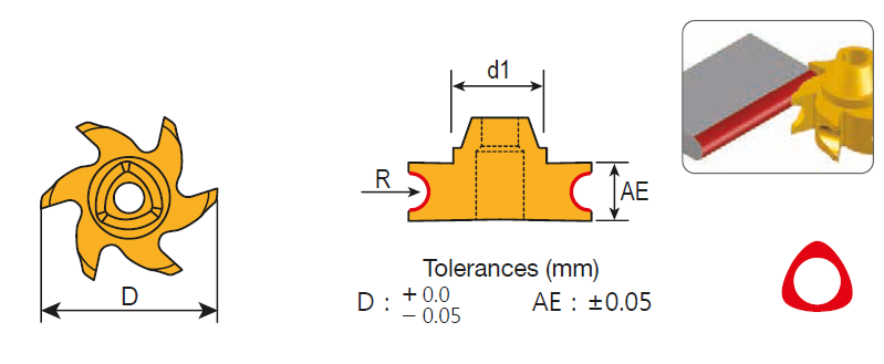 Radienfräser passend für das UFO System. Lieferbar mit verschiedenen Radien und für unterschiedliche Materialien.